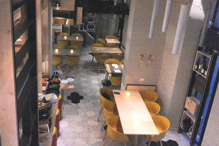 Nel piatto niente di riscaldato, la cucina è espressa e a vista, il buffet è ridotto alle derrate fresche; insalate, frutta, bufale e verdure, mentre vengono serviti ai tavoli fritti indimenticabili, panelle, arancini, pizze e molto altro, per un aperitivo o una cena da consumare in tranquillità, secondo i propri tempi. Il beverage è adeguato al livello del locale, con cocktail di ogni tipo, tutta la gamma di birre Poretti artigianali alla spina e una cantina adatta a soddisfare tutte le esigenze.