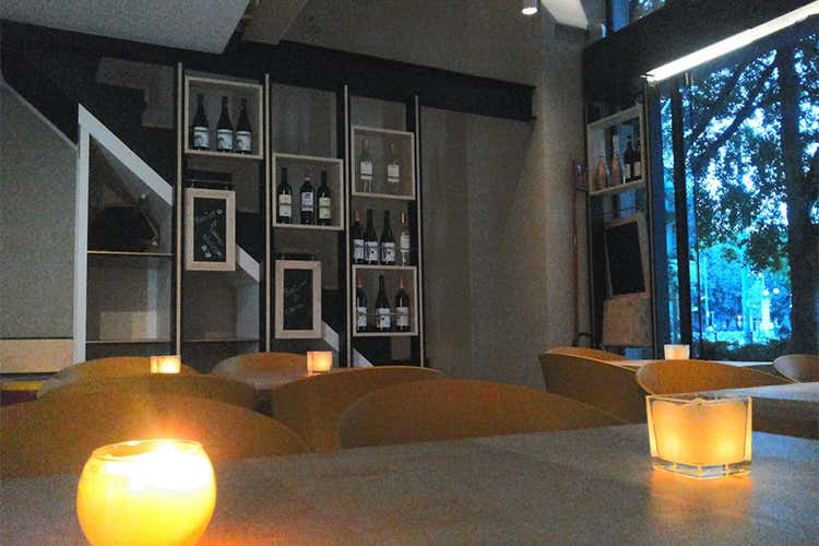 È vero però che la vista dell’Arco e il polmone verde del Parco Sempione sono di una bellezza incontestata e meritavano anche un luogo dedicato ad un target più esigente e alla ricerca di un’esperienze di qualità ed eleganza. Ecco allora che, girato l’angolo e direttamente affacciato sulla piazza, a giugno ha aperto i battenti ParcoMilano, da una visione del giovane e quotato architetto Mario Farinella che ha trasformato un’ex show room in un locale multitasking, elegante e discreto. Circa 60-70 posti all’interno, giocati anche nel soppalco, 20 nell’elegante privè-salotto e altri 20 fuori sull’immancabile marciapiede che qui però è ordinato e con una vista diretta sull’arco impagabile.