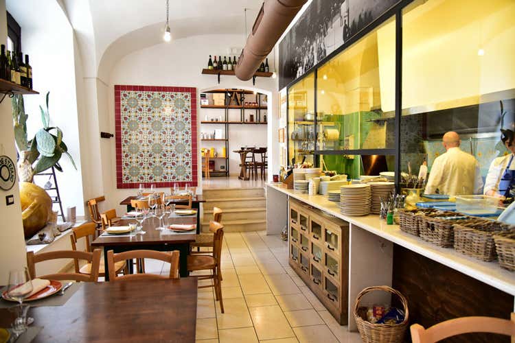 Questo è il posto giusto se cercate un ristorante dove si rispetti la tradizione nelle pietanze storiche ma nello stesso tempo volete anche dilettarvi con piatti moderni dove la fantasia e la tecnica dello chef hanno grande importanza. Inoltre vi intriga la cucina di territorio, fatta con prodotti freschi e stagionali della zona, magari vorreste che il locale sia un po’ intimo senza grandi stanzoni rumorosi, poi, visto che non c’è limite alle pretese, desiderate spendere poco, ma veramente poco. Pensate: stavolta ho esagerato, magari esistesse un ristorante così. Invece vi sbagliereste, per soddisfare tutti questi requisiti dovete solo recarvi a Putignano appunto, nella piccola piazza principale in pieno centro. Stefano Donghia se manca più di un giorno perché magari invitato in qualche evento preferisce chiudere il locale, ma se c’è lo vedrete pure fisicamente all’opera perché la piccola cucina è tutta a vista, addirittura nella prima delle due piccole sale. Valentina vi accoglierà da perfetta padrona di casa.