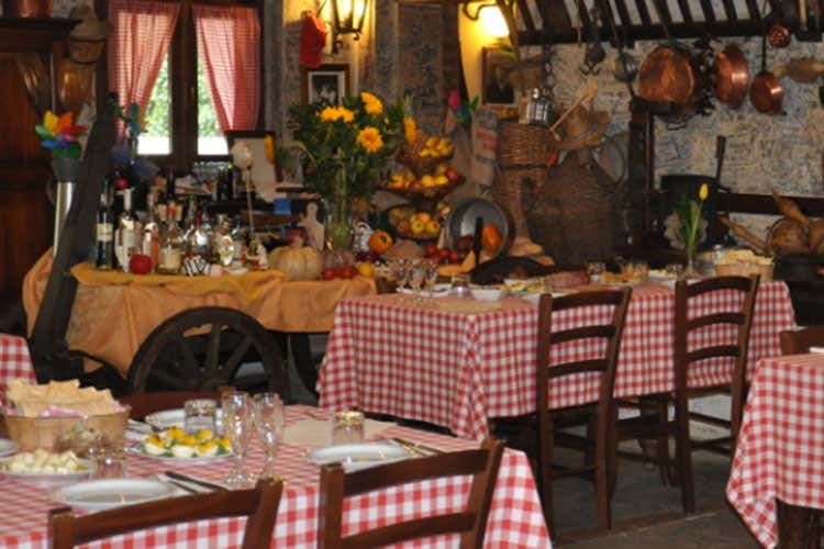 L'ambiente è rustico e famigliare: travi a vista, mobili antichi, utensili e stoviglie dell'epoca appesi ai muri, tovagliato di cotone a quadretti bianchi e rossi che ti catapultano a ricordi di pranzi in allegra compagnia a casa della nonna, che finivano sempre con grandi cantate.