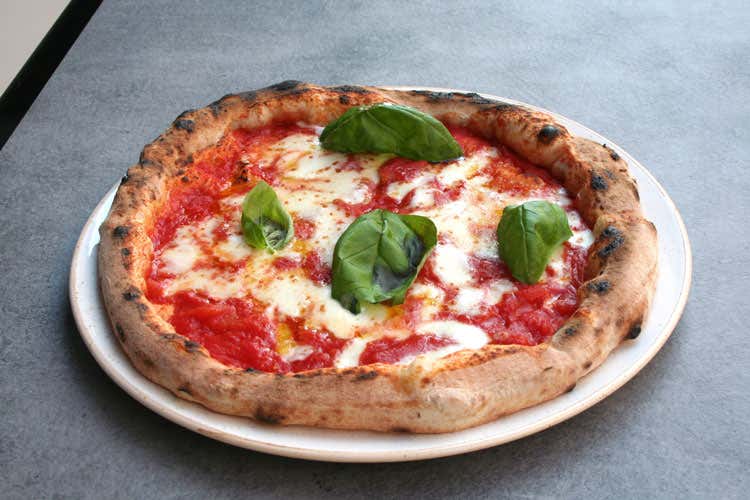 Per quanto riguarda la pizza, tre sono le proposte: sfiziosità, bianche e rosse. Scelta limitata e ingredienti di alta qualità che variano in base alla stagionalità delle materie prime, per una pizza napoletana ma con il cornicione volutamente non eccessivamente alto. La farina usata è macinata a pietra e di alta qualità, e la mano è quella di Enrico Formicola, direttamente dall’apertura di Pizzivm a Milano. Vi è anche la possibilità di asporto grazie a una finestrella ad hoc che dista un passo dal forno sempre acceso.