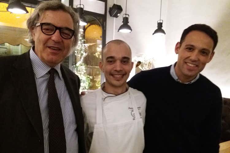 A fare gli onori di casa, Sebastiano e Antonio Santarelli, coadiuvati da un efficiente personale di sala. Con una new entry della cantina, un fresco Sauvignon in purezza 2017, sono state servite Alici fritte con maionese allo zenzero, panure agli agrumi e pepe di Sichuan, seguite da Tartare di tonno rosso e carciofo croccante, con panzanella di pomodoro, crumble di pane nero e salsa di yogurt e Sfoglia di melanzane alla parmigiana con pesto di basilico e pinoli, entrambe accompagnati da un Petit Manseng 2017 dal vitigno dei Pirenei Jurancon. Ancora, abbinato ad un’altra etichetta di successo dell’autoctono laziale Bellone, l’Anthium, è arrivato l’Uovo fondente, perlage di tartufo nero, guanciale croccante di Amatrice, cicorietta e fonduta di Parmigiano, con tre primi: i famosi Gnocchi ricci, le Fettuccine ai gamberi rossi, crema di broccolo siciliano e pecorino di Sommati e la Carbonara mezzo pacchero Verrigni con guanciale e pecorino.