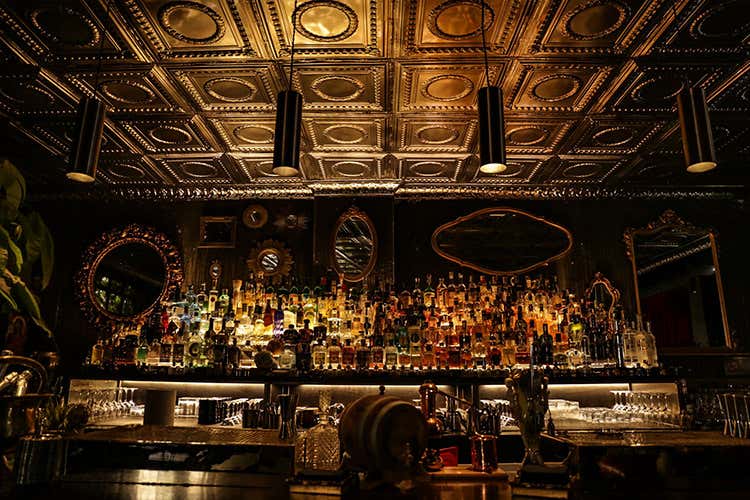 Divani e posti a sedere enormemente spaziosi, perché qui l'obiettivo non è l'overbooking ma il divenire un punto di riferimento saldo e intoccabile dal tempo. L'illuminazione è fioca, appena accennata, per offrire all'ospite un mix tra relax e probizionismo, un silenzio di colori per vivere meglio l'esperienza sensoriale dei cocktail realizzati dalle abili mani del barman di casa