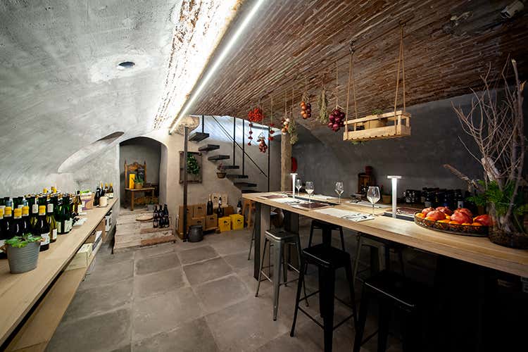 nuovo locale si sviluppa su una superficie di 160 mq. Qui l'ambiente è di stile, il design è lineare, dominano i colori tenui e naturali e l'illuminazione è studiata per esaltare la bellezza dei piatti. Ogni pezzo è unico, realizzato da artigiani locali. Ferro, legno e pietra rimandano alla concretezza, i tavoli tondi da otto persone invitano alla convivialità, mentre un piccolo giardino verticale all'ingresso e alcuni tocchi di verde in sala sottolineano il legame con la natura, così come la frutta appena nella cantina, dove è possibile degustare ottimi vini.