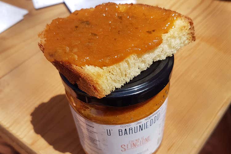 Se un milanese viene a Palermo e nei dintorni lo trova facilmente nei panifici, nelle gastronomie, nei bar, nelle rosticcerie, magari non sarà il migliore ma sempre buono sarà. Ma se gli viene lo sghiribizzo di mangiarlo a Milano non sarà facile. Anche il palermitano magari è a casa ed ha desiderio di uno sfincione e gli scoccia uscire, che fa? Semplicissimo sia per il milanese che per il palermitano, comprano qualche vasetto di crema di sfincione “U Barunieddu”, ne spalmano la giusta quantità su una fetta di pane, meglio se non bianco, o su una focaccia o su una bruschetta, chiude gli occhi ed assapora un meraviglioso sfincione palermitano.