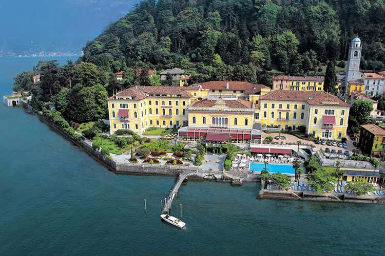 Hotel, che sorge su un promontorio che si spinge verso il centro del lago, coronato da verdi montagne e circondato da splendidi giardini all’italiana. Al suo interno, gli affreschi e i dipinti di scene mitologiche sulle pareti catturano lo sguardo dell’ospite, così come i soffitti a cassettoni affrescati, le tappezzerie d’epoca, i lampadari in cristallo di Murano. La solennità degli scaloni di marmo toglie il fiato, così come la salle à manger, un Salone Reale, illuminato da lampadari in bronzo e cristallo, la cui imponenza viene amplificata dalle specchiere.