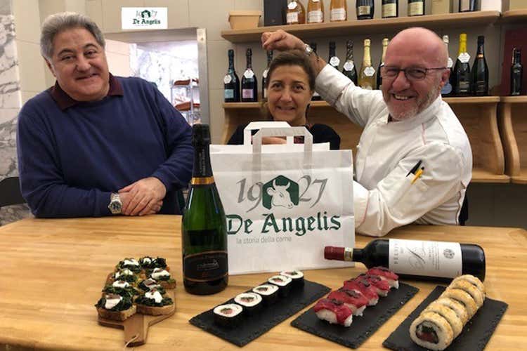 Questo appuntamento in macelleria rappresenta un passo nell’evoluzione della storica azienda di famiglia, in un’ottica di innovazione e intraprendenza, ancor più importante in questo periodo in cui i nuovi tempi della pandemia spingono a scelte innovative. Ora l’attività, giunta alla quarta generazione, si sta trasformando in una realtà di ospitalità ed accoglienza, da negozio a bistrot, dove scegliere dal banco delle carni o da quello della gastronomia carni a peso selezionate e piatti pronti di ogni genere proposti dal menu giornaliero. Si può anche optare per la consegna a domicilio o l’asporto anche per un pranzo veloce ma nel rispetto delle diverse esigenze nutrizionali, o ancora degustare in un’area dedicata le prelibatezze dello chef Vezzoli anche solo per un aperitivo. La storia della macelleria De Angelis nasce nel 1927 ma affonda le radici nell’800 quando entrambe le famiglie dei nonni paterni avevano delle macellerie a Roma.