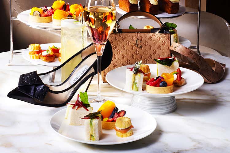 Un incontro tra griffe che prende ispirazione dalla collezione permanente Core e dai modelli di Jimmy Choo. L'executive pastry chef Daniele Bonzi ha infatti creato la torta alla vaniglia Cloud, la torta al cioccolato Madeline Bag o la riproduzione della pump Saresa. Dettagli di perle, cristalli e il monogramma JC decorano le proposte di Bonzi accanto a finger sandwich, tartellette alla frutta e una selezione di varietà di tè, Champagne e un cocktail. L’afternoon tea viene servito dal 14 ottobre al 4 novembre ogni giovedì dalle 15,00 alle 18,00.