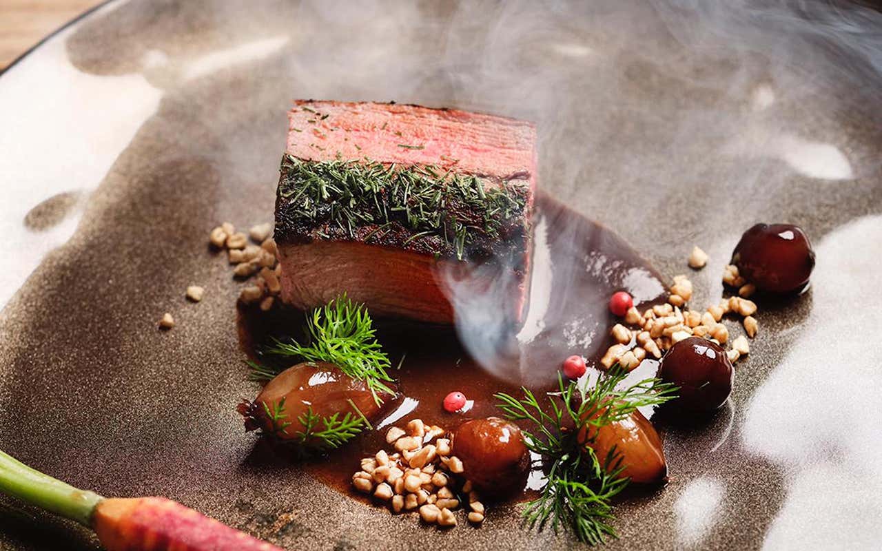 «Cerchiamo di offrire non il solito prodotto altoatesino, ormai arcinoto, ma una cucina che osa spaziare su pietanze, sapori, accostamenti insoliti. Potrei fare l’esempio della mia cagliata di latte, ben lontana dalle usanze locali, accostata ad un brodetto di mela verde e allo speck croccante, che invece rappresentano il territorio. O ancora gli spaghettoni fatti rimacinando le briciole di Schüttelbrot, pane croccante sudtirolese a base di farina di segale, acqua, lievito, sale e spezie: la pasta viene poi mantecata con acciughe e cime di rapa. La tradizione territoriale è presente, insomma, ma non ci facciamo condizionare».