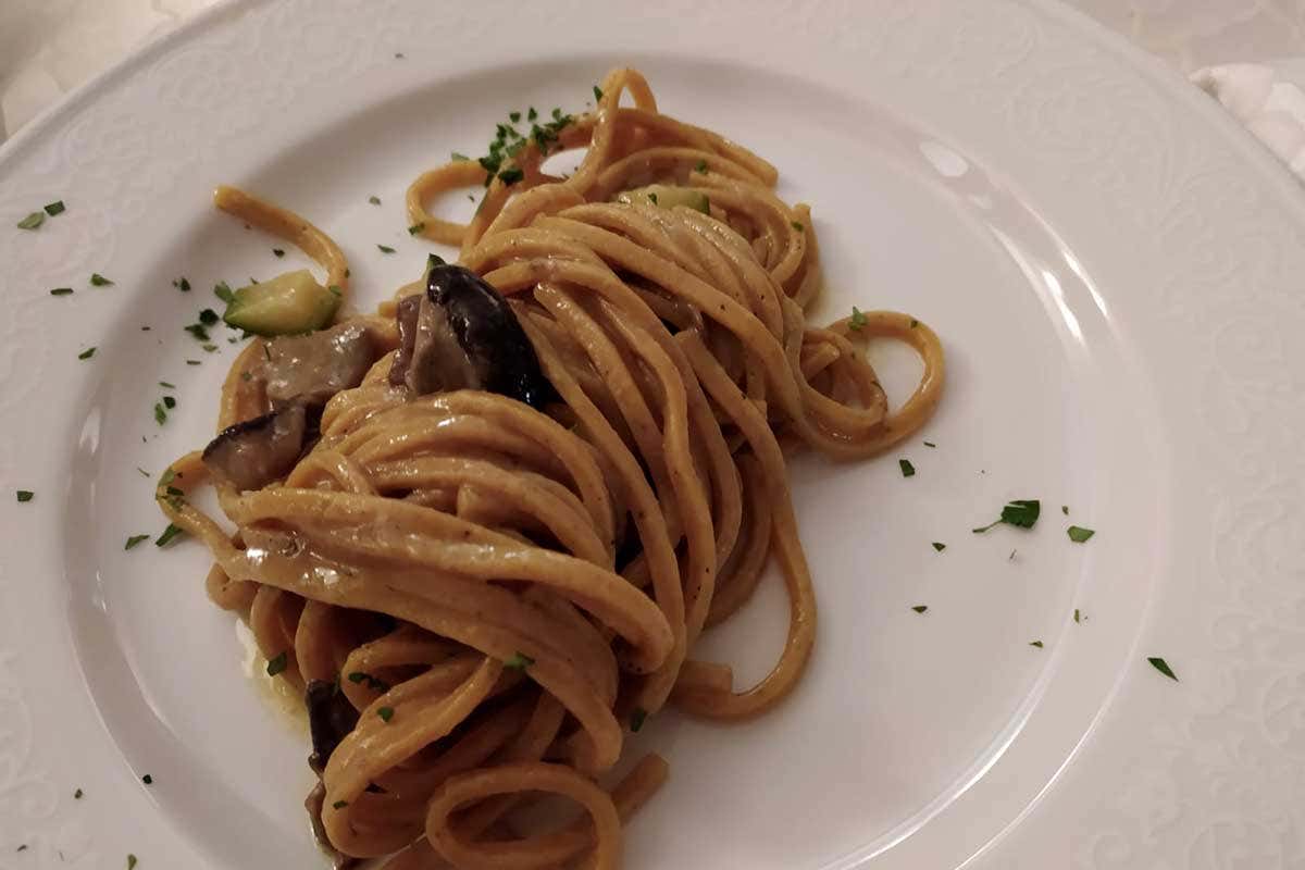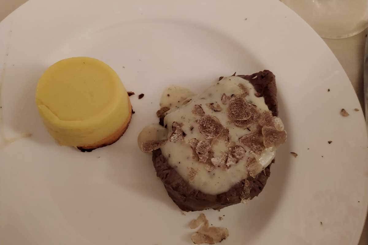 La cena alla Taverna del Lupo ha concluso l’incontro gastronomico come un “crescendo rossiniano”: il menu si è aperto con l’Uovo soffice al tartufo al quale è seguito lo Scrigno di gnocchi ripieni di caciotta in vellutata di parmigiano e tartufo, per continuare con il Filetto di manzo con fonduta di tartufo e terminare con il Tortino di zucca con salsa vaniglia.