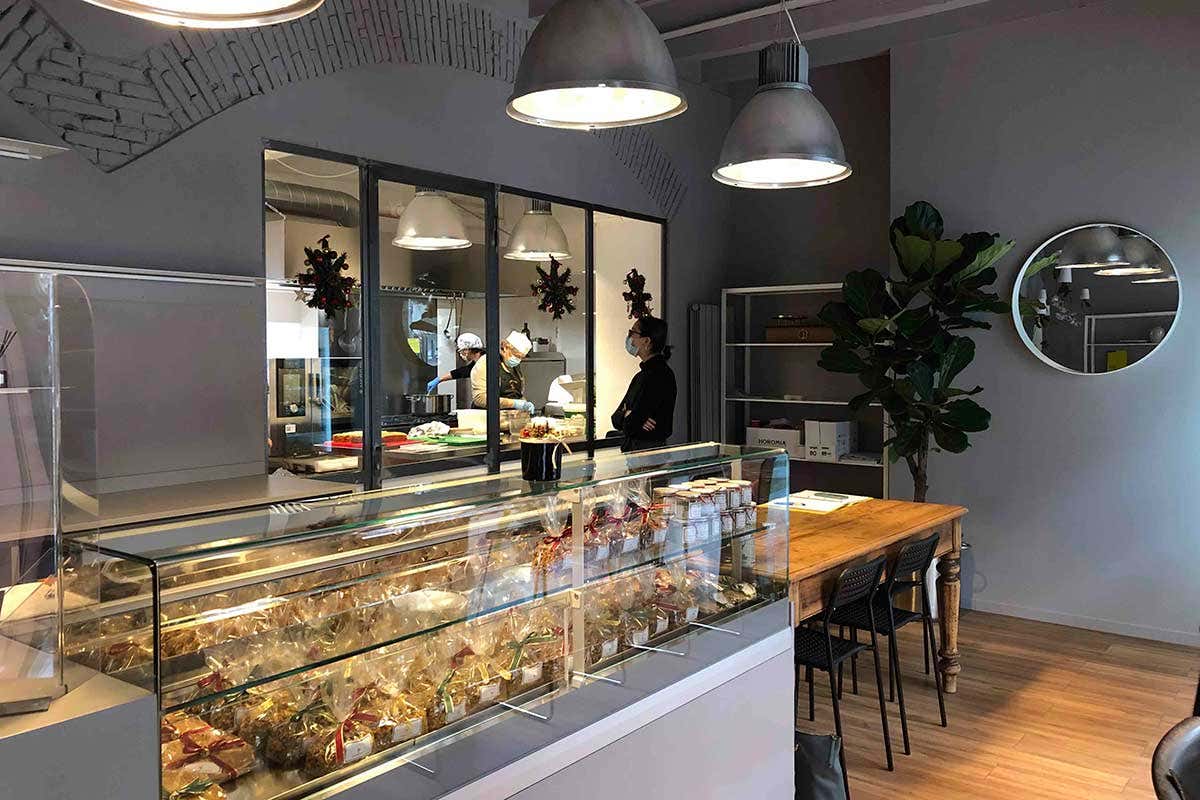 Dall’antipasto al dolce, tutto viene preparato nel laboratorio di via San Lazzaro, partendo dalla materia prima, che viene lavorata sapientemente dalle mani di Claudine. Nel laboratorio, attrezzato con una cucina professionale, è possibile fermarsi a mangiare un piatto nella pausa pranzo, oppure ritirare pasti da asporto, un luogo accogliente in cui ritrovarsi per trascorrere un momento in compagnia gustando i piatti originali rivistati da Claudine. Uno spazio che non lascia segreti: a dividere la cucina dal bancone e dai posti a sedere, solo una parete a vetri che rende visibile l’area delle preparazioni. E a rendere ancora più confortevole l’esperienza, è stato allestito anche un angolo libreria.
