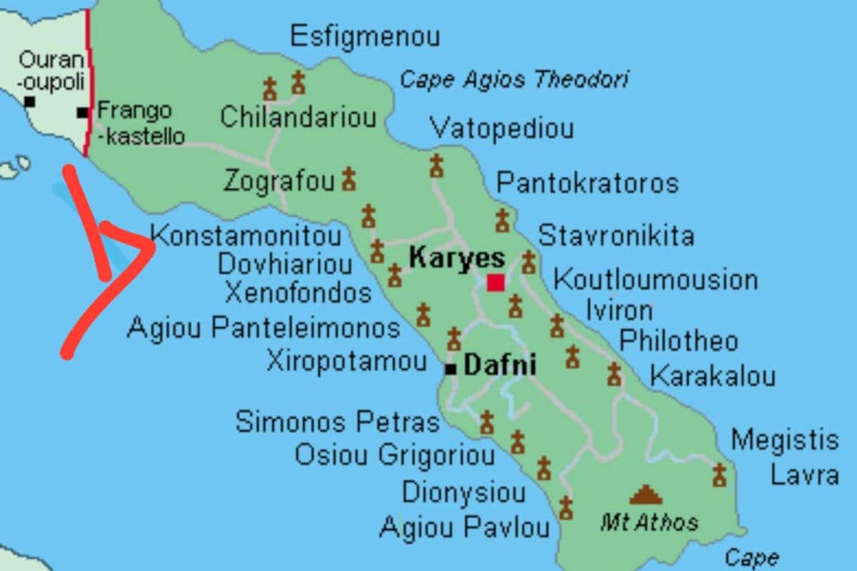 La mappa dei monasteri del Monte Athos