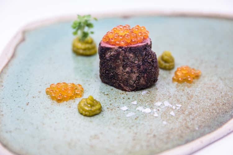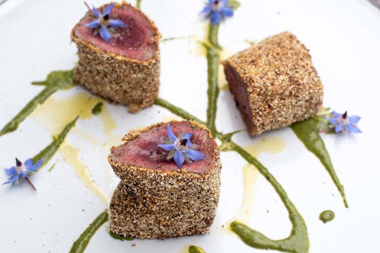 Tra i piatti da non perdere l’iconico Stinco di Vitello arrosto nel vecchio forno del pane, presentato e affettato in sala e servito con le patate in tecia. Il piatto icona che ha stupito anche gli ispettori della Michelin.