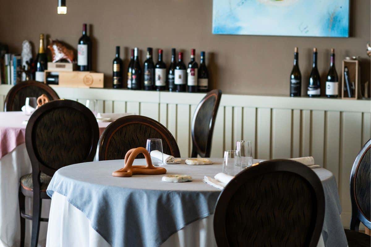 Appena cinque tavoli disposti in sala. Erano sette prima del Covid, poi per i motivi legati al distanziamento sociale vennero ridotti per una soluzione che sarebbe dovuta essere temporanea ma che alla fine ha convinto sia Paolo sia Luca. Due i tavoli sistemati di fronte all'ampia e lunga vetrata che affaccio sul lago sottostante: un panorama che (tempo permettendo) ammalia e distrae, vi avvisiamo.