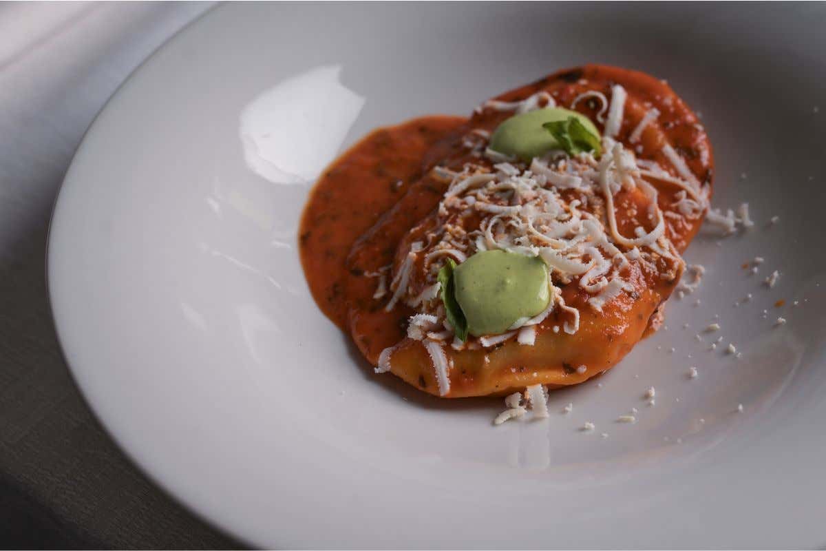 Raviolo ripieno di pesce spada con sugo ai tre pomodori