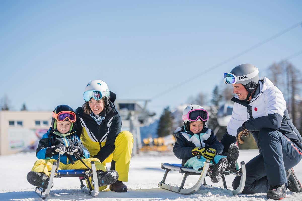 Non da meno è Obereggen, che ai bambini dedica due parchi e 1 Miniclub, 2 piste da slittino e la strepitosa Alpine Coaster, generatori di gioia in un'area che continua a brillare anche dopo il tramonto, grazie all'illuminazione notturna su una pista da sci, una pista da slittino e un parco immaginato per brillare sotto la luna. Oltre al Kinderland, che accende la passione per lo sci anche in chi vede la neve per la prima volta, il parco Brunoland, sulla pista Eben, vanta tapis roulant lunghi 30 e 50 metri, una giostra, un gatto delle nevi, una pista da snowtubing, un castello gonfiabile, un tunnel innevato e onde di neve. Qui i bambini possono scatenarsi tutti i giorni dalle 10 alle 16, con giornate di cacce al tesoro, party sulla neve, giri di ricognizione con il maestro, sessioni di trucco e lezioni per modellare i palloncini. Ovviamente, in attesa dell'arrivo dell'orso Bruno, che accoglie gratuitamente con il “Brunoland Pass” chi soggiorna nelle strutture ricettive dell'Associazione Turistica Val d'Ega.