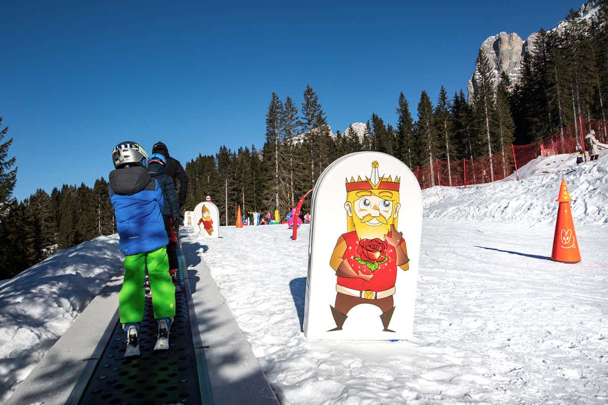 Il Kinderpark Scuola di sci Vigo di Fassa e Carezza e il Kinderland Re Laurino - con un castello gonfiabile, slittini, collinette innevate, una giostra, simpatici istruttori e un nastro trasportatore, per trasformare quella dell'apprendimento in un'esperienza da vivere in tutta spensieratezza, immersi nella magia della neve - sono solo due delle dediche speciali di un comprensorio che si veste a misura di bambino con attrezzature di risalita ad hoc, accessi riservati e appositi dispositivi di traino, una miriade di piste blu, semplici da percorrere e facili da raggiungere, e proposte convenienti sul fronte dello skipass.