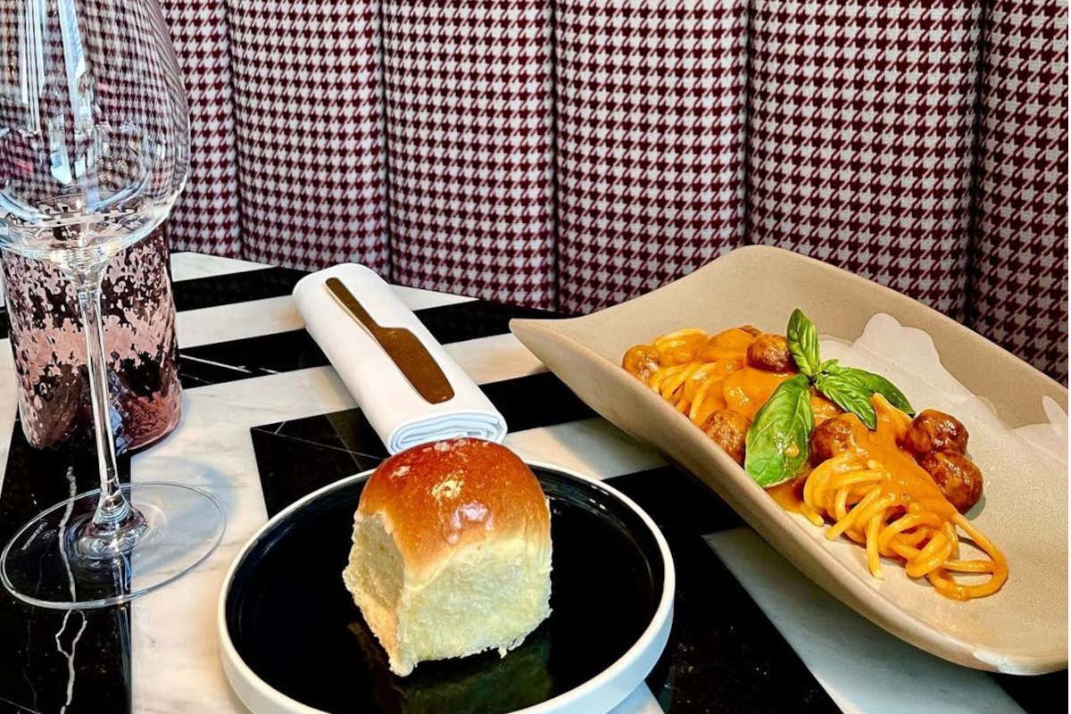 Giudice rivisita il piatto con uno spaghettone di Gragnano con salsa al pomodoro fermentato. I pomodori vengono lasciati fermentare 5 giorni, cotti con una sfumata di vino bianco e con un leggero tocco di salsa di soia. Le meatballs sono create con carne di vitello e manzo, luganega e mortadella e successivamente mantecate con olio extra vergine di oliva e burro al lime.