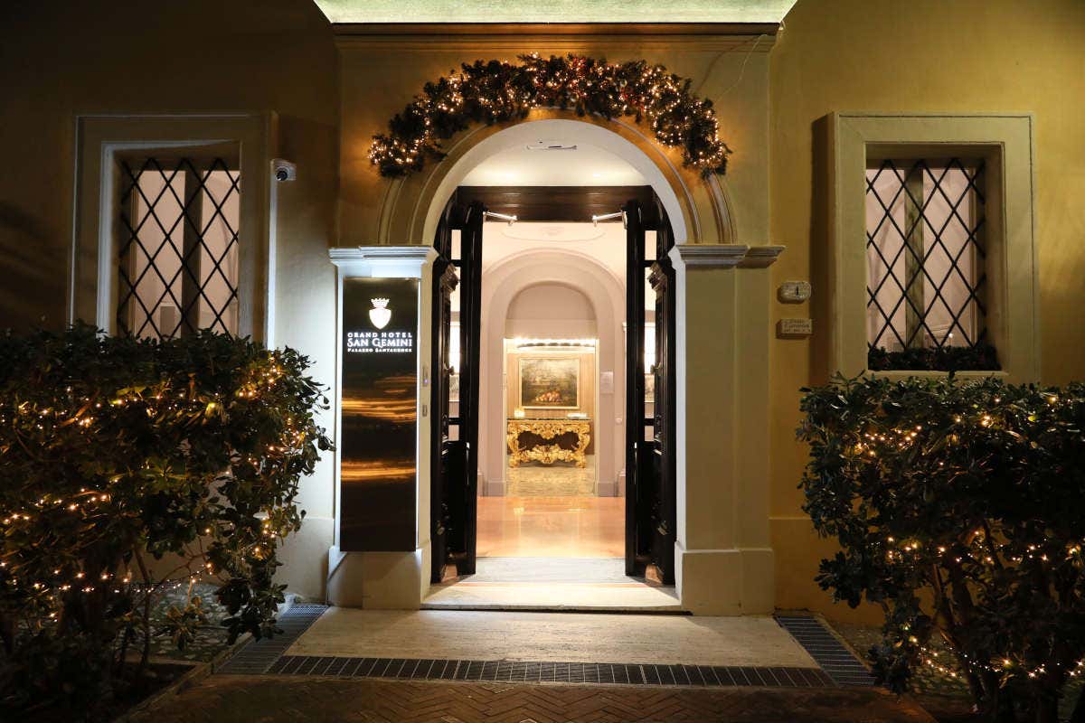 L'ingresso addobbato a festa dell'Excelsior Hotel Gallia