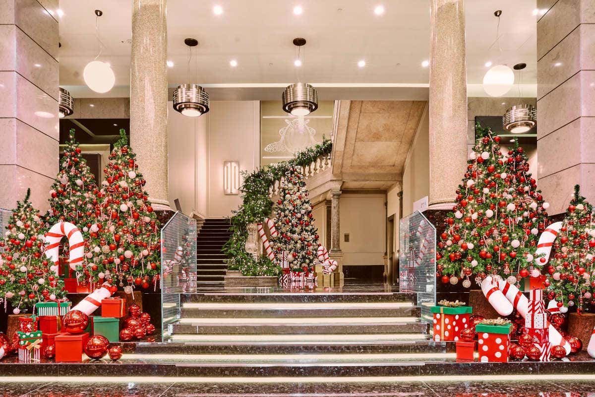 L'ingresso addobbato per il Natale del St. Regis Rome