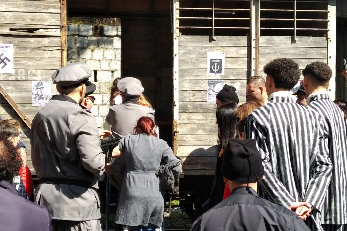 La rievocazione delle scena di deportazione sul Treno della Pace