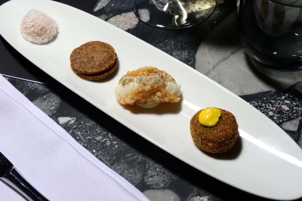 - Anche la cucina può essere arte, se fatta con passione. E quella di martedì 23 maggio ha dato prova di capacità artistiche. La cena “150 The Manzoni” è stata la prima di una serie a quattro mani, dove brillano alcune stelle della nostra cucina. La brigata, di The Manzoni è guidata da Giuseppe Daniele, che vanta una carriera a Villa Crespi, Seta, Lume e Bulgari. Lo affiancano il sous-chef siciliano Gabriele Fiorino con esperienze in Spagna, poi Bulgari e il pastry chef albanese Halit Gajda (Lume, Ratanà). Giuseppe Daniele ha ospitato Giuseppe Pastorino de “L’Alchimia”.
