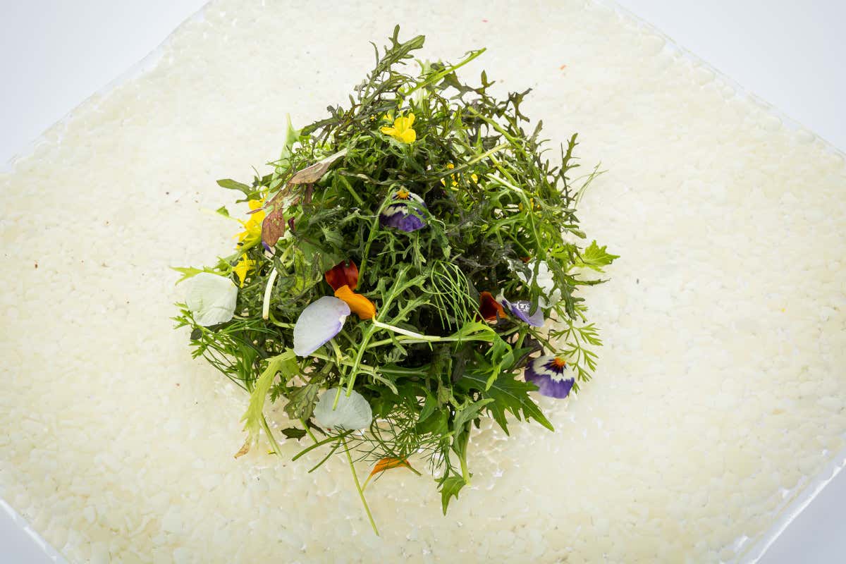 Dall’orto verticale al piatto, dunque, con “Dolce forte”, un’insalatina saporita composta utilizzando esclusivamente i derivati dell’orto verticale. La base si compone di rucola victoria, mista a tre tipi di senapi, rossa, verde e giapponese, chiamata “mizuna”, i cui aromi intensi si mescolano con l'amarezza del dragoncello. I germogli di finocchietto e di carota donano un tocco di freschezza in più e, infine, i fiori di senape con i petali di calendula e le viole del pensiero, fungono da equilibratori di gusto e dolcezza per il piatto. «Questo piatto gourmet esalta la freschezza e i profumi delle piantine, coniugando con eleganza le insalatine e i fiori colorati,» afferma chef Filippo Sinisgalli.