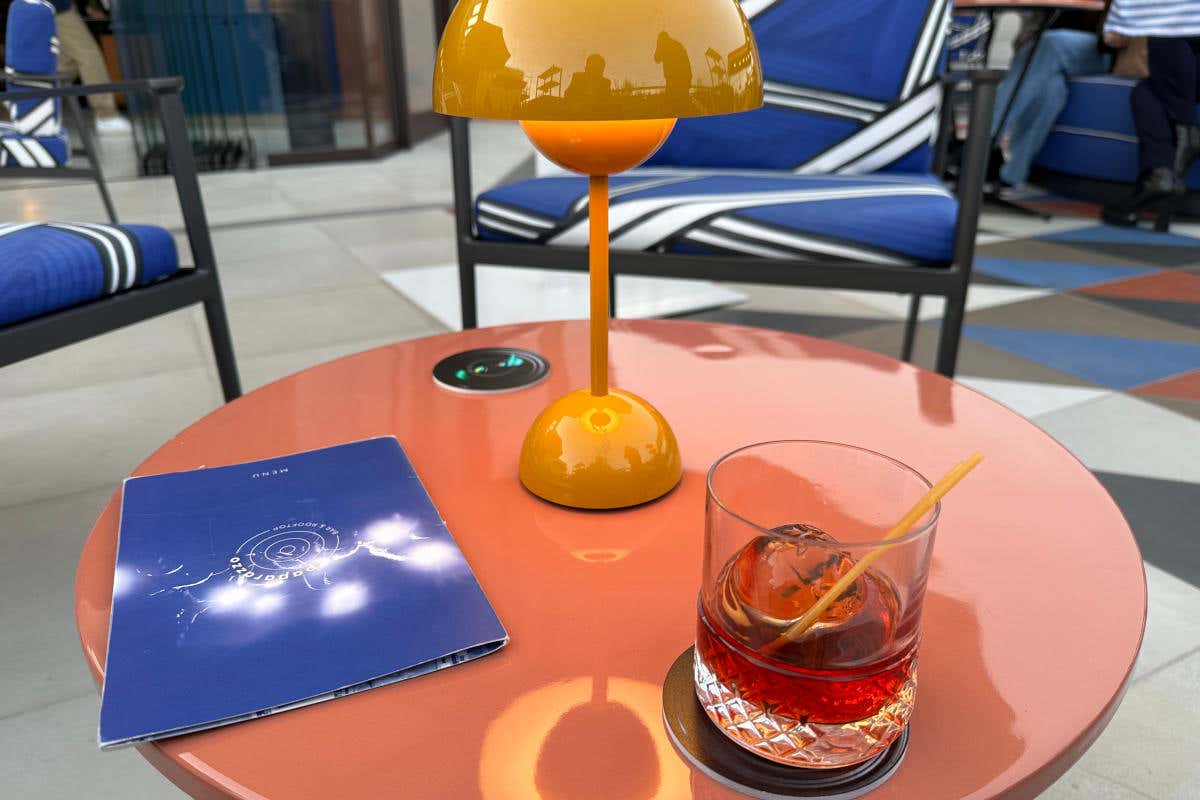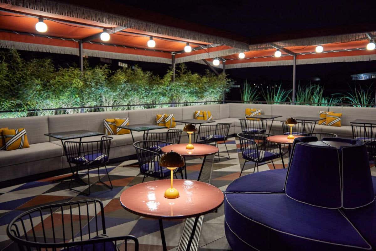 Per il design della nuova terrazza, Le Méridien Visconti Rome ha collaborato con Studio Strato, celebre studio di architettura romano che ha disegnato gli spazi in chiave contemporanea ricreando l’atmosfera di quegli anni. Lo spazio si articola come una sequenza cinematografica fatta di immagini e luci immersive. Fin dall’arrivo al rooftop, una grande parete a specchio con il suo gioco di riflessi fa entrare subito nel vivo della scena. Il luogo è allegro e colorato, con molti elementi caratterizzanti, sia architettonici che decorativi.
