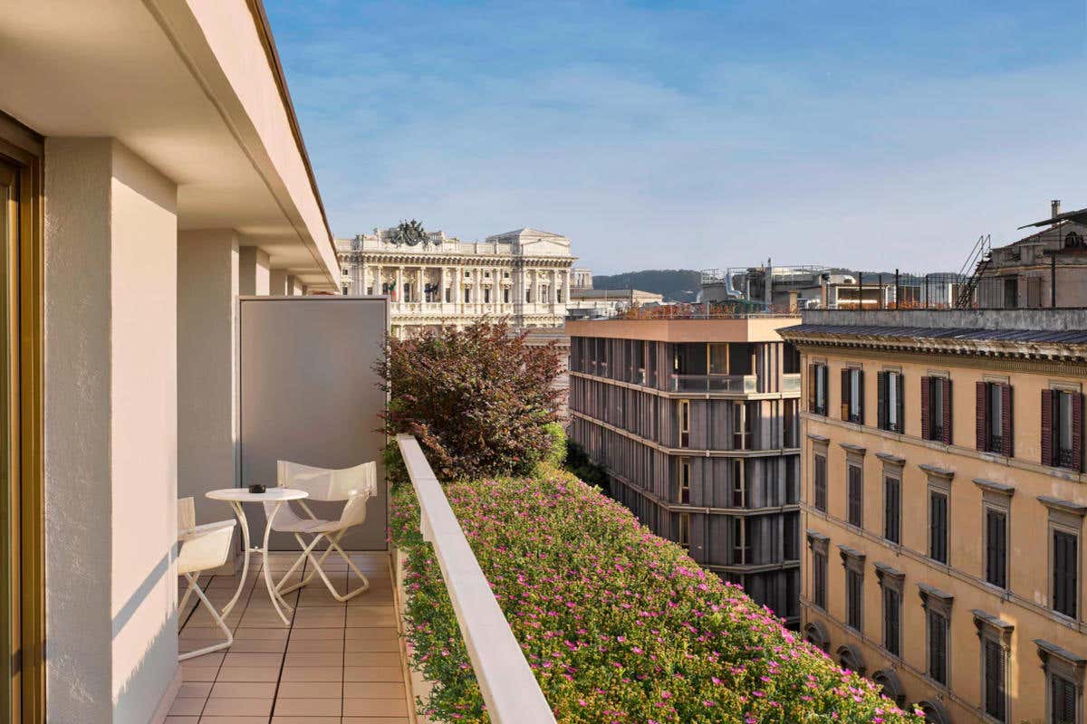 Il terrazzo di una suite dell'hotel Le Meridien Visconti Rome