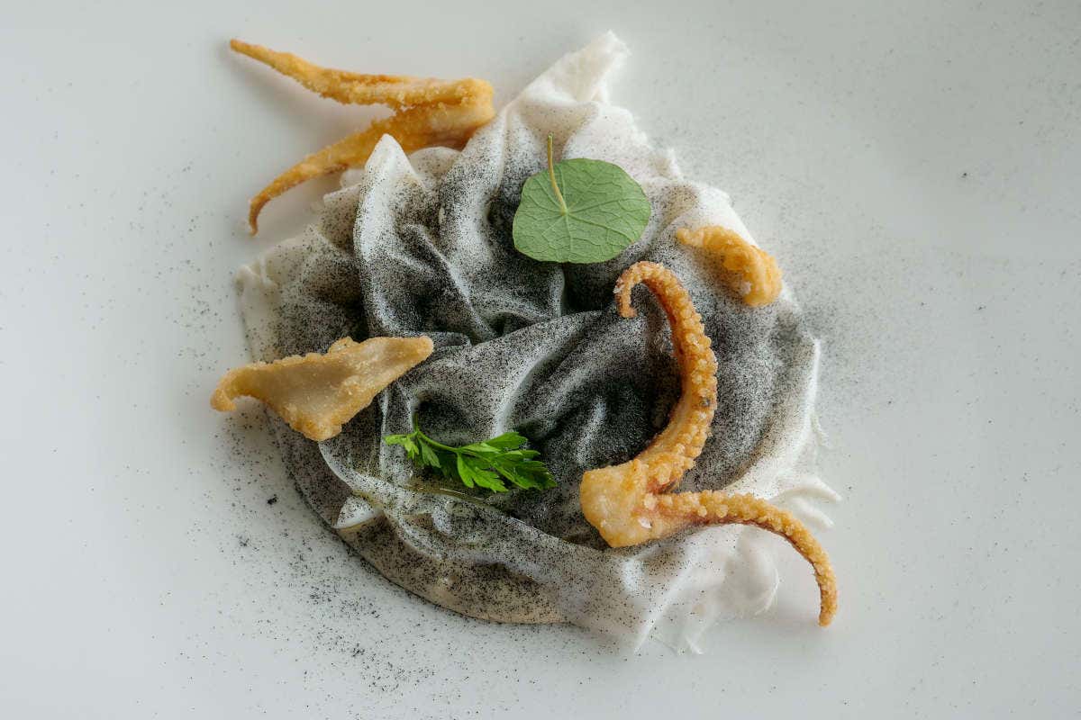La proposta di punta del ristorante è il menu "Sapori in Movimento", un esempio di audacia creativa e innovazione che esplora nuove interpretazioni della cucina regionale. Tra gli antipasti si segnala l’ostrica poche, salsa d’ostrica e lampone ghiacciato, cotta brevemente in acqua a 90 gradi, servita con una salsa derivata dalla sua acqua di cottura e, per l’appunto, da una granella di lampone ghiacciato. Un altro piatto degno di nota è il velo di Calamaro, emulsione di patata alla brace, piselli e cerfoglio. Il calamaro viene frullato e cotto a vapore tra due fogli di carta forno (idea che richiama un famoso piatto del celebre chef siciliano Pino Cuttaia). Una creazione di grande tecnica ma, al contempo, “di sostanza”, a riprova del fatto che l'approccio creativo di Comitale non resta immobile nella “torre eburnea” ma riesce a concretizzarsi in piatti di grande appeal e gusto.