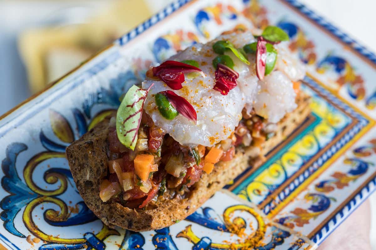 Per un buon inizio possiamo consigliare la Zucchina di Nerano e il suo fiore con ricotta di pecora al lime, la Bufala croccante su gazpacho di datterini e pesto di basilico, la Frisella di crudo di gamberi e pomodorini arrosto, le Crocchette di baccalà alla marinara e le Alici impanate e fritte.