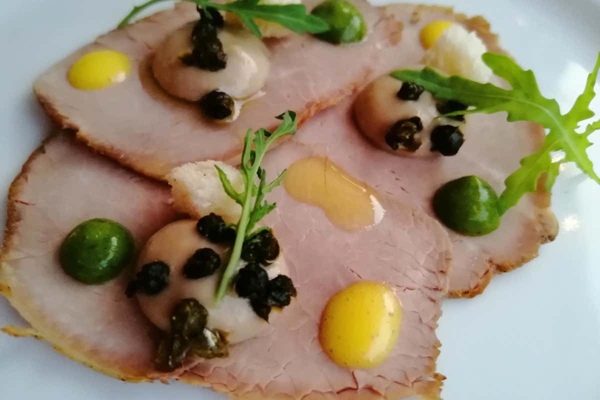 La sua concretezza ci fa pensare ad una cucina senza sorprese ma poi arriva qualcosa a tavola e comincia la magia. A partire banalmente dal pane: fatto in casa, con una scelta di farine, una lunga maturazione dell'impasto, molto idratato, che lo rendono soffice e croccante, così come per la focaccia al rosmarino. Conosce bene le tecniche di cottura e l'uso del fuoco, e non soltanto nelle grigliate. I mini-capperi abbrustoliti nel Vitello Tonnato in salsa verde o le taccole alla brace sugli Gnocchi ripieno di pesto sono tutt'altro che una decorazione. Consistenze armoniche tra il velluto e il croccante e tocco leggero per gli aromi più invasivi: più che lo spicchio d'aglio meglio usare un olio aromatizzato. E c'è anche un ritorno alle salse, come la bernese dimenticata, ma in versione light.