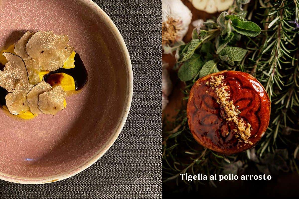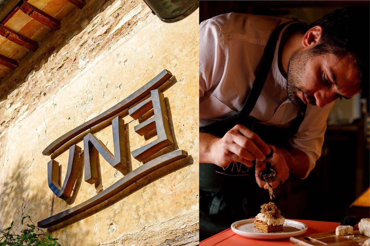 Come in parte anticipato, qui il manico è di quelli importanti. Giulio Gigli, chef 34enne che nel post Covid ha lasciato il ruolo di head of creativity al Disfrutar di Barcellona (oggi ristorante al secondo posto della classifica 50 Best) per aprire nella sua Umbria il suo ristorante. Praticamente a casa sua, coadiuvato da un team fidato di ragazzi giovani come lui incontrati nelle varie esperienze in giro per il mondo. Fatto sta, il prossimo 1 agosto Une (in antico dialetto umbro, acqua) compie due anni, un traguardo che lo chef ha voluto celebrare organizzando per questa data una cena, dallo stile informale, tra l’altro con l’amico di famiglia Giorgione tra gli ospiti.