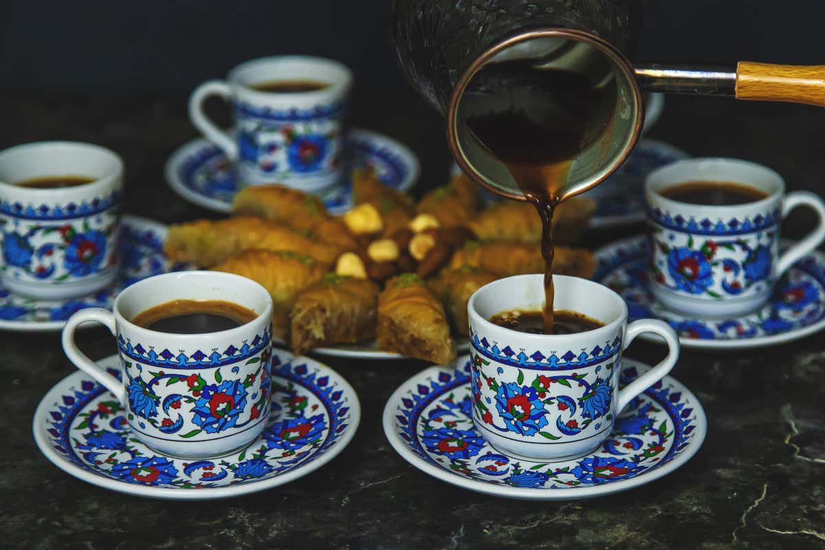 La zuppa di lenticchie rosse, chiamata mercimek çorbasi, è una pietanza tradizionale molto apprezzata in Turchia. Preparata con lenticchie rosse, cipolle, pomodori e una combinazione di spezie, è un piatto ricco e nutriente, ideale per le giornate più fredde. La Turchia è anche famosa per i suoi dolci tradizionali, come il baklava, uno strato di sfoglia croccante farcito con noci o pistacchi tritati e poi inzuppato nel miele. Il künefe è un altro dolce popolare, fatto con formaggio filante avvolto in pasta fillo e cotto fino a quando non diventa dorato e croccante. La cucina turca offre anche una vasta selezione di verdure fresche e piatti vegetariani. Le melanzane, gli spinaci, i peperoni e i pomodori sono spesso protagonisti di piatti come il sarma, un involtino di foglie di vite ripiene di riso, verdure e spezie. Inoltre, la Turchia è conosciuta per il suo caffè turco, una bevanda densa e ricca servita in piccole tazze. Il tè turco è anche molto popolare e viene solitamente bevuto con zucchero.