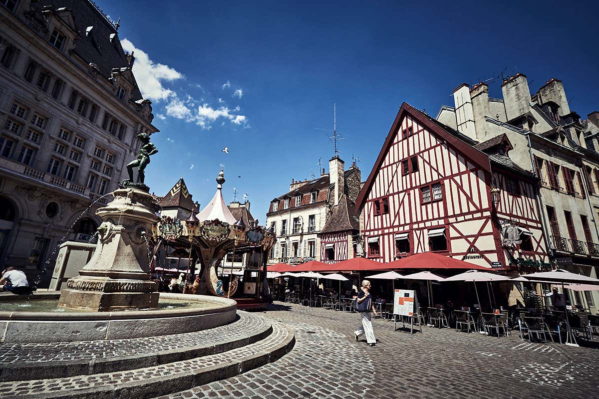 Il nostro percorso inizia proprio da Digione, capitale della Borgogna, un territorio vinicolo tra i più prestigiosi del mondo. La civetta, mascotte della città, ci accompagna per il centro storico completamente pedonale: dal prestigioso palazzo ducale, alla cattedrale gotica di San Benigno dalle due torri, oggi monumento nazionale, alla chiesa gotica di Notre-Dame alle antiche case a graticcio (maison à colombages), alla pittoresca François-Rude, nota anche come Piazza Bareuzai per via della presenza della scultura di un giovane vignaiolo intento a pigiare l’uva. Ai margini del centro storico la Cité internationale de la gastronomie et du vin, aperta nel maggio del 2022. Questa è la città produttrice della mostarda (sono due le firme storiche: Maille ed Edmond Fallot), del pain d’épices e della crema di ribes nero (cassis) utilizzata per il tipico aperitivo francese, il Kir. Da non tralasciare una tappa a Les Halles, il mercato coperto ottocentesco e la visita alla fabbrica del pain d’épices Mulot & Petitjean nel centro città.