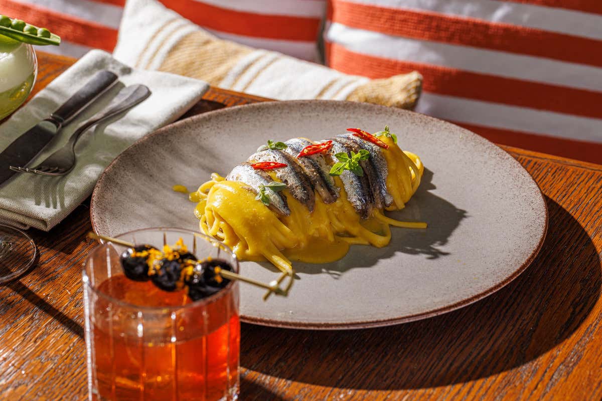 "Elio" si anima anche durante l’aperitivo attraverso una drink list firmata dall’head bartender Simone De Luca e dal suo team, che comprende i cult della mixology come Spritz, Martini e Negroni, varie signature e spirit italiani come limoncello, vermouth, liquore allo zafferano. In pairing c'è una selezione di bites come frittura di calamari, pizza bianca e porchetta, olive marinate, pinzimonio e pane pizza farcito con mozzarella, pesto, pomodoro secco e misticanza. All'interno, luminoso e arredato sobriamente e sulla grande terrazza si possono godere nel relax più assoluto.
