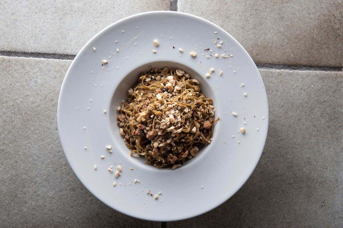 Delizioso anche l’uovo barzotto e, quando stagione, il mix tra funghi porcini, guanciale croccante e granella di nocciole (loro, una vera istituzione da queste parti). Tra i primi piatti un must è il Fieno di Canepina, sia in versione tradizionale (con ragù di manzetta) sia rivisitata con farina di canapa, ragù bianco di maialino con fiore di finocchio e granella di nocciola.