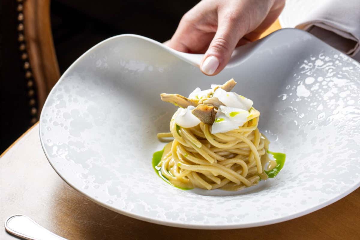 Ma cosa si mangia a L'Archeologia Privè? Il menu de L'Archeologia Privè è diverso da quello di L'Archeologia. Si tratta di un menu degustazione personalizzato, realizzato su misura per ogni ospite, dove la creatività dello chef Stefano Ruzzoli si fonde con le richieste del cliente. Il risultato? Un menu "a sorpresa" che si basa sulle preferenze e sulle voglie comunicate durante la prenotazione: da capesante e quaglie a ricci di mare accompagnati da acqua di pomodoro e zucchine grigliate, fino a deliziose ostriche e champagne. Ma non è tutto! Anche il servizio è un'esperienza esclusiva, con lo chef che presenta e completa i piatti direttamente al tavolo, aggiungendo un tocco scenografico che renderà la serata davvero indimenticabile e l'esperienza culinaria unica nel suo genere.