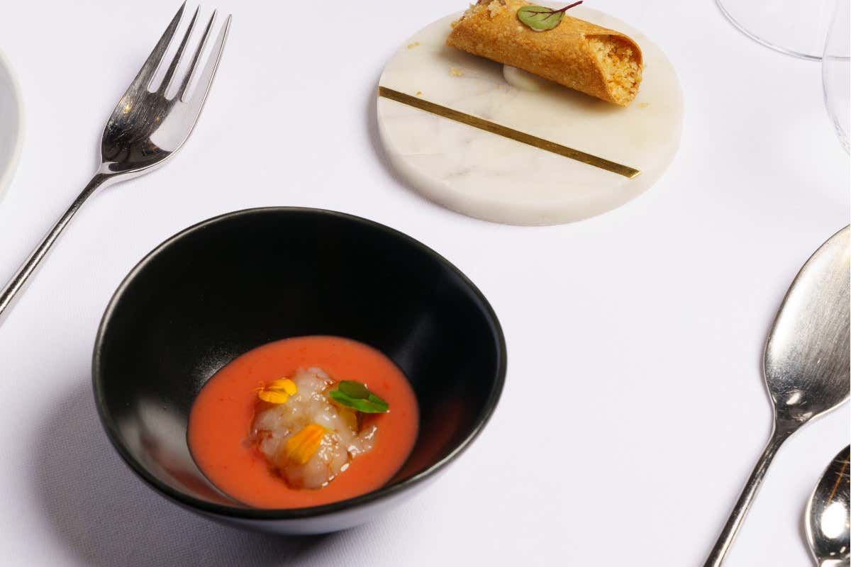 L’esperienza culinaria è arricchita in sala dal lavoro del sommelier Marius Dumitru, che aggiunge una dimensione unica, portata dopo portata. Il suo percorso professionale, iniziato con passione e curiosità, lo ha portato a diventare una figura di spicco nel mondo della sommellerie, tanto da essere recentemente nominato Miglior sommelier della Lombardia Ais 2024 e tra i primi ad entrare nella top 100 nazionale per Wine List Italia. Marius non si limita a selezionare vini eccellenti per gli ospiti, ma propone abbinamenti innovativi che esaltano ogni piatto. La sua capacità di stupire si manifesta in colpi che passano attraverso grandi etichette, vini di ricerca e - tra i primi in Italia ad inserire dealcolati - a suon di un servizio elegante ma non ingessato e degustazioni alla cieca, dove l’ospite viene letteralmente travolto da un vortice di cultura e passione.