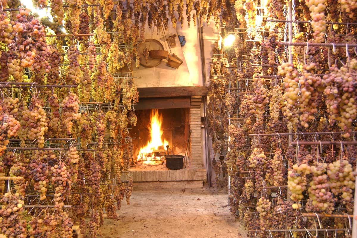 Sulle colline che sovrastano Sant’Angelo sorgono piccoli vigneti, che qui hanno trovato terreno ideale. Il vino santo è di colore giallo ambrato limpido e tendente al dorato, il sapore dolce, armonico, di buona struttura ed esprime una vasta gamma di sapori e aromi fruttati e floreali per questo è un ottimo vino da servire dopo i pasti con frutta secca, dessert e dolcetti secchi.