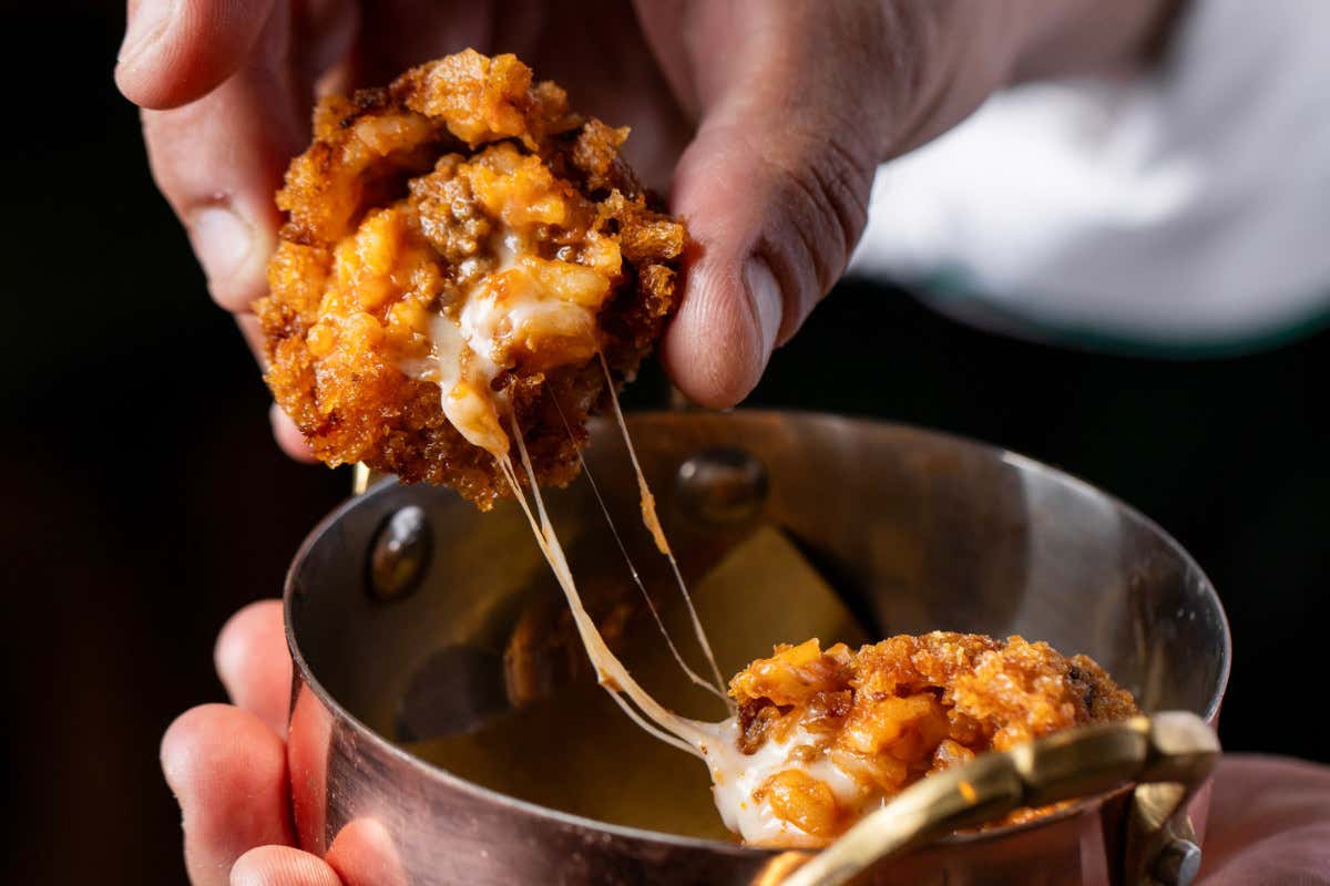 Il menu di "Fornace Stella & Muscas" offre un'ampia gamma di fritti tutto realizzato dallo chef Francesco Aielli, suddivisi in due categorie: ‘classici’ e ‘special’. Tra i classici, non possono mancare i supplì, con una proposta unica chiamata ‘ubriacone’, insieme a crocchette di patate, fiori di zucca, filetti di baccalà e le montanare, che sono disponibili in due varianti, classica e cantabrica, grazie a una doppia cottura che le rende ancora più gustose. Gli ‘special’ includono delle deliziose mattonelle, preparate con bucatini all’amatriciana o con melanzane alla parmigiana, e innovative sferette farcite di pulled pork o di coda alla vaccinara, che promettono di sorprendere anche i palati più esigenti. Un menu ricco e variegato, che celebra la tradizione culinaria con un tocco di creatività.
