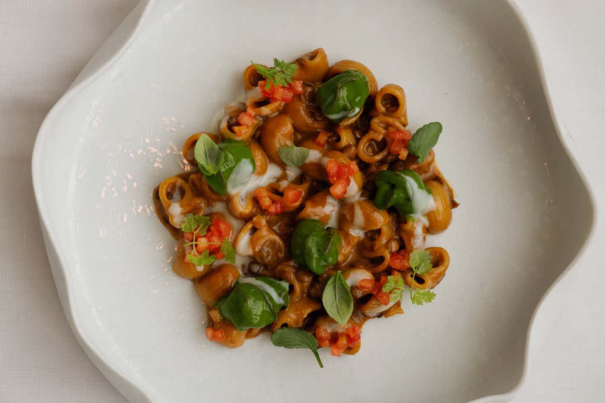 La cucina de L'Orangerie è un “dibattito” continuo tra la Campania e il Piemonte. «Ho sempre cercato di unire questi due mondi, rispettandone le peculiarità. Il raviolo Omaggio a Nonna Ida è il simbolo di questa filosofia: un plin ripieno di ragù napoletano. È un piatto che racconta due storie, le mie radici campane e la mia nuova vita nelle Langhe».
