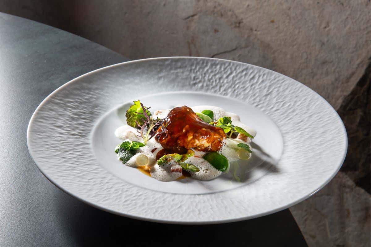 La proposta de Le Cattedrali Relais è composta da diversi menu degustazione: il menu Riflessi, con piatti comfort e “piacioni”, il menu a mano libera e il menu Bacialé che riprende il termine piemontese bacialé, che stava a indicare colui che combinava i matrimoni: «Il menu Bacialé è l'unione tra le mie esperienze, la mia cucina e le mie radici con il territorio che mi ha accolto e che mi circonda - ci racconta lo chef - infatti ci sforziamo e lavoriamo nel creare diversi connubi tra ingredienti, come il tonno e la bagna cauda che ho citato precedentemente». A proposito di cavalli di battaglia, il piatto che rappresenta di più lo chef Renzi è il piccione, una proposta «che mi piace fare perché è difficile da realizzare ma molto bello tecnicamente. Lo priviamo, lo frulliamo per due settimane e lo cuciniamo sull'osso. Infine, lo scaloppiamo in cucina e in futuro mi piacerebbe poterlo fare in sala. Sono legato a questo piatto perché ci lavoro da ben sei anni, perfezionandolo sempre di più».