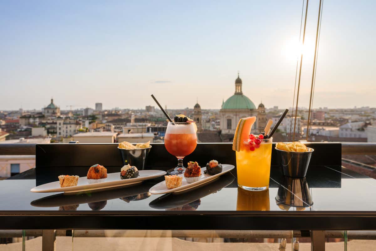La vista è il fiore all'occhiello del The Roof, ma i suoi punti di forza non si esauriscono di certo lì. Un aspetto particolare è, senza dubbio, la varietà della sua offerta. Il locale è aperto tutti i giorni sia a chi soggiorna nelle due strutture alberghiere sia ad una clientela esterna. C'è un menu studiato ad hoc per il pranzo, che prevede piatti più adatti a una pausa veloce (Caesar Salad, per esempio, ma anche un tagliere con salumi e formaggi lombardi, Club sandwich e Bacon cheeseburger) oppure proposte tradizionali, come il Risotto con l'ossobuco o la Cotoletta alla milanese, solo per citarne due. Dopo le 15, il The Roof non si ferma. Resta aperto fino alle 17 per un drink o uno spuntino con vista. Dalle 18, poi, parte l'aperitivo, che comprende quattro finger food studiato dallo chef, con la possibilità di ordinare anche alla carta, sia piatti sfiziosi sia signature cocktail.