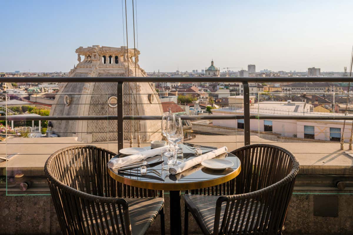 In una città, Milano, in cui la competizione per la migliore terrazza con vista è sempre particolarmente accesa, il The Roof si candida, senza ombra di dubbio, ai primi posti assoluti. Salendo al decimo piano, infatti, si può ammirare una vista sullo skyline milanese che ha pochi eguali nel panorama meneghino. Merito senza dubbio della posizione centralissima, a due passi dal Duomo, e di una sorta di corridoio urbano che si staglia davanti agli occhi dei fortunati fruitori. La città, a qualsiasi ora del giorno, può essere ammirata da una prospettiva unica. Persino la Madonnina, che rispetto al The Roof ha una posizione più defilata, assume un fascino particolare. Il Duomo, infatti, è quasi totalmente nascosto da altri palazzi, ma Lei si erge dorata e sembra quasi di poterla toccare. Di notte, invece, il The Roof veste l'abito migliore, con la città che si accende di mille luci e assume un fascino ineguagliabile.