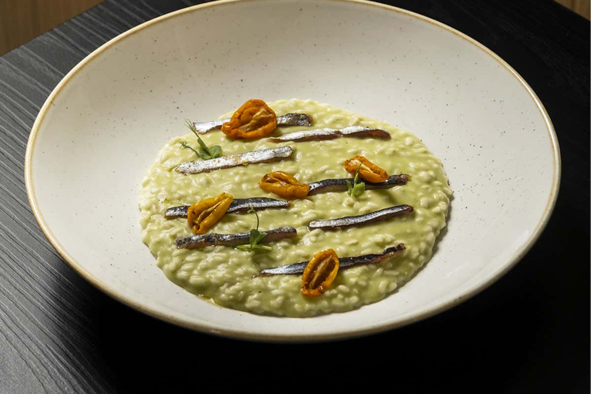 Risotto con sparacelli, pomodoro secco, alici marinate di Giardini del Massimo