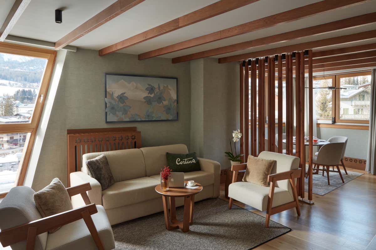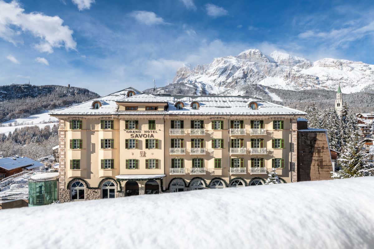 Dal 1922, il Grand Hotel Savoia incanta i suoi ospiti con la sua imponente facciata in stile Art Nouveau color champagne. All’interno, l’architettura tradizionale ampezzana si fonde con elementi moderni, creando un ambiente caldo e raffinato. Gli spazi comuni, caratterizzati da ampie vetrate, accolgono la luce naturale e offrono una vista straordinaria sulle Dolomiti, rendendo ogni angolo dell’hotel un luogo speciale.