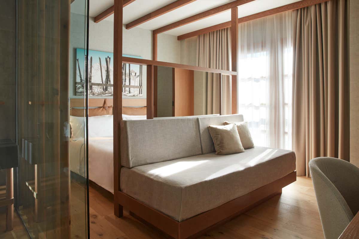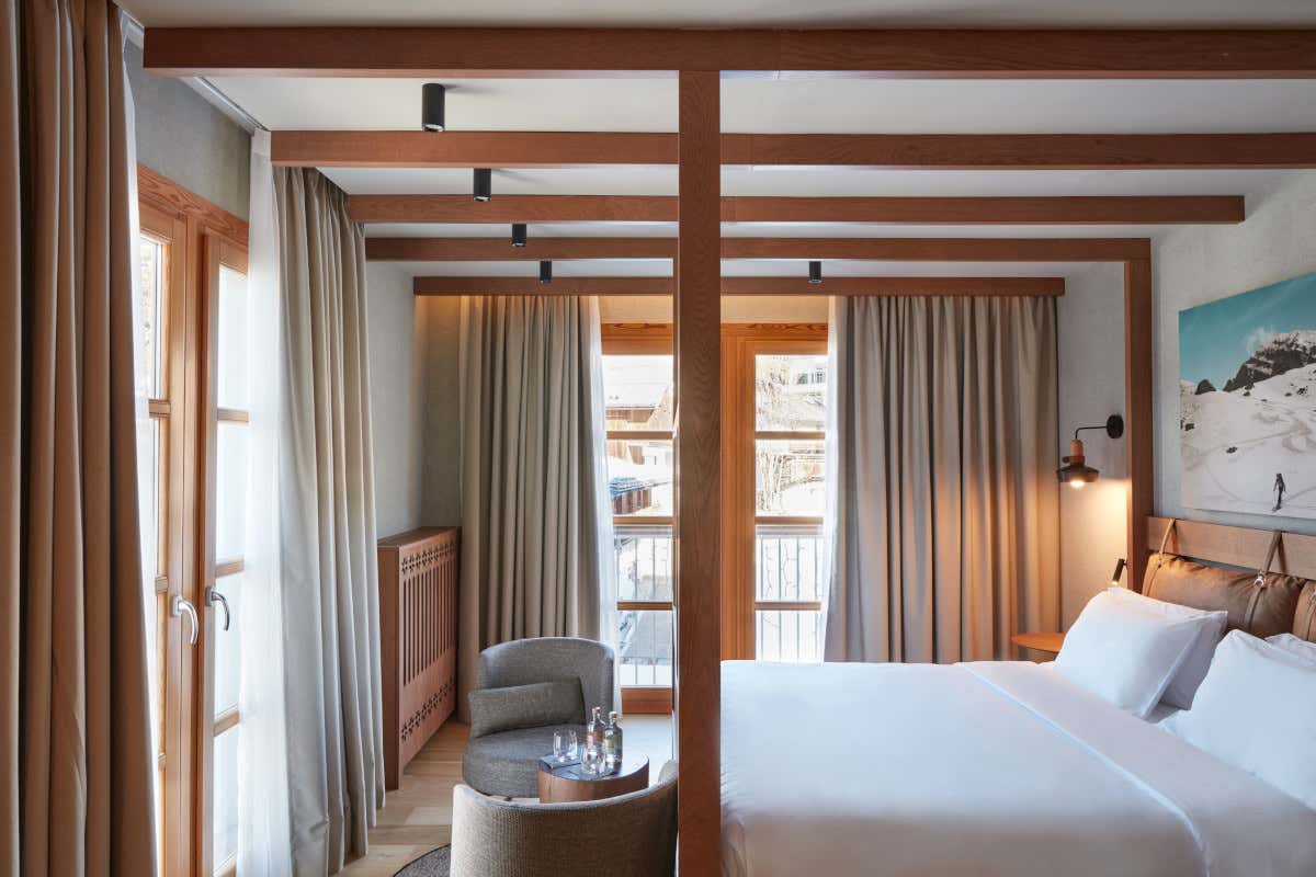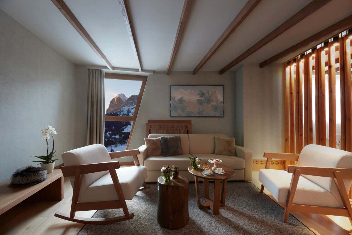 Le 130 camere e suite dell’hotel, dalle Collection Room alla favolosa Royal Suite, sono una vera celebrazione del comfort e del design. Gli interni combinano legno, pelle e tonalità calde, riflettendo l’atmosfera alpina.