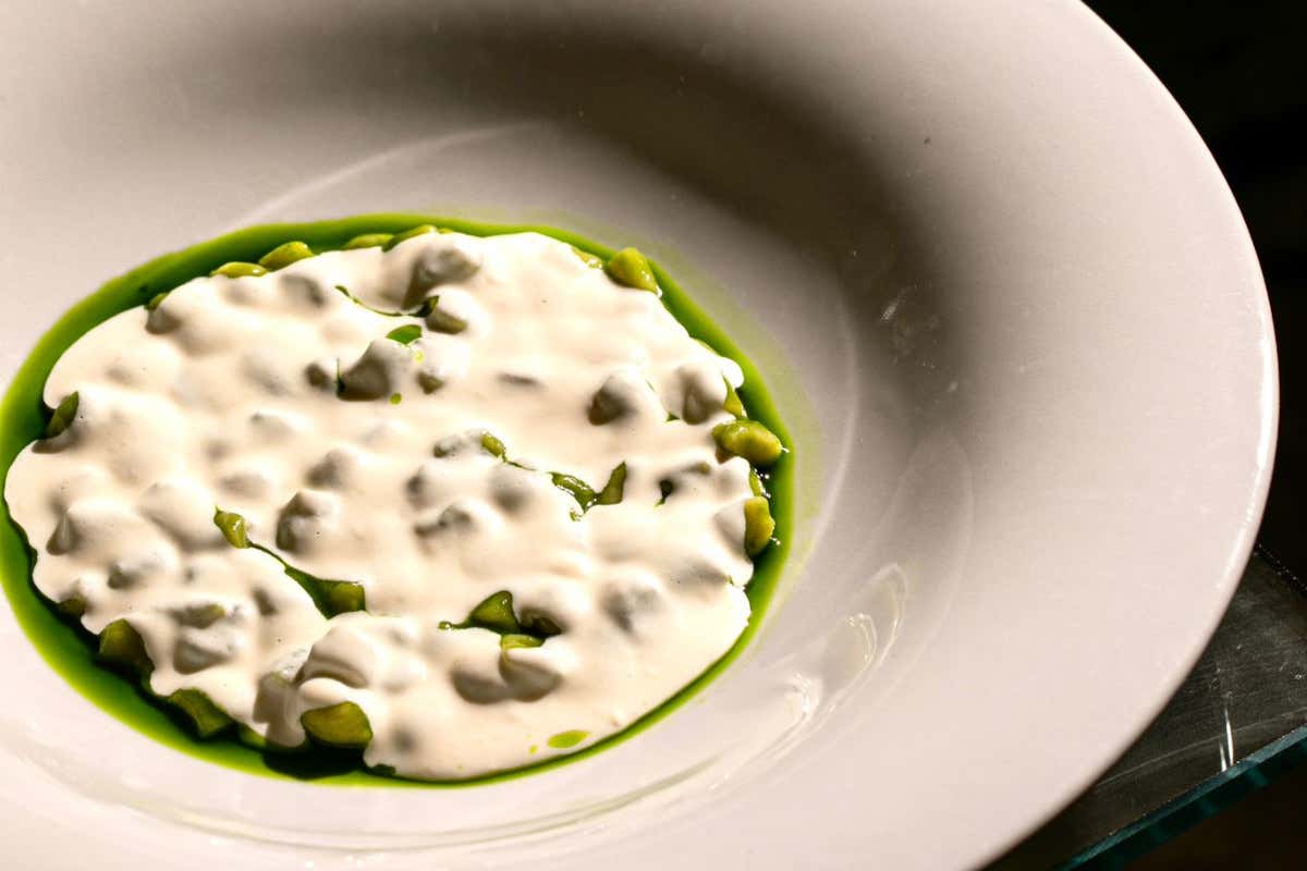 Gnocchetti, erbe di campo, limone candito e stracchino stagionato in grotta di Contatto (Foto: Alessandro Baratelli)