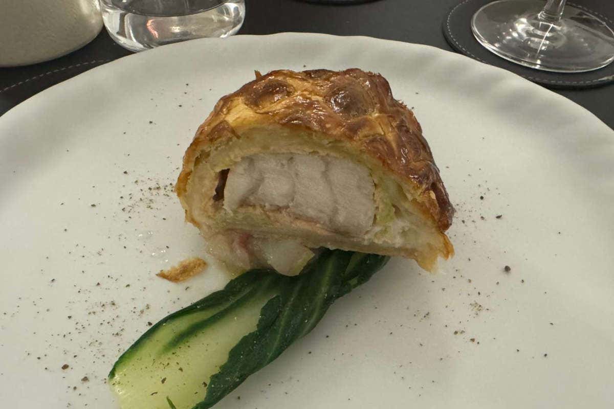 Filetto di Cernia alla Wellington servito con la sua tartare e bietola al burnt butter
